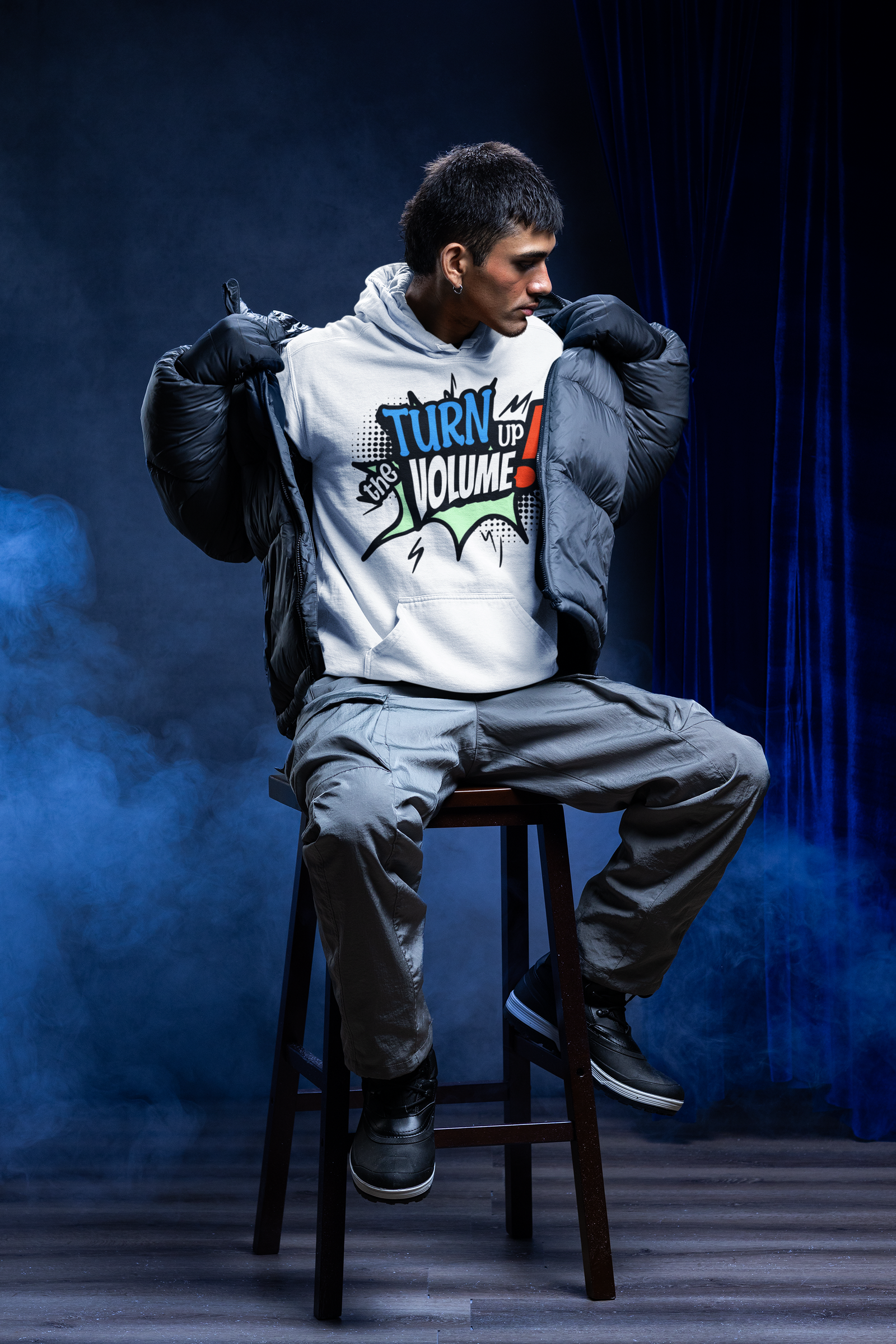 This turn the volume up hoodie comes with a vibrant, colorful comic-style design that represents music, energy, and attitude. The bold typography and dynamic graphics make it perfect for people who love stand-out streetwear.